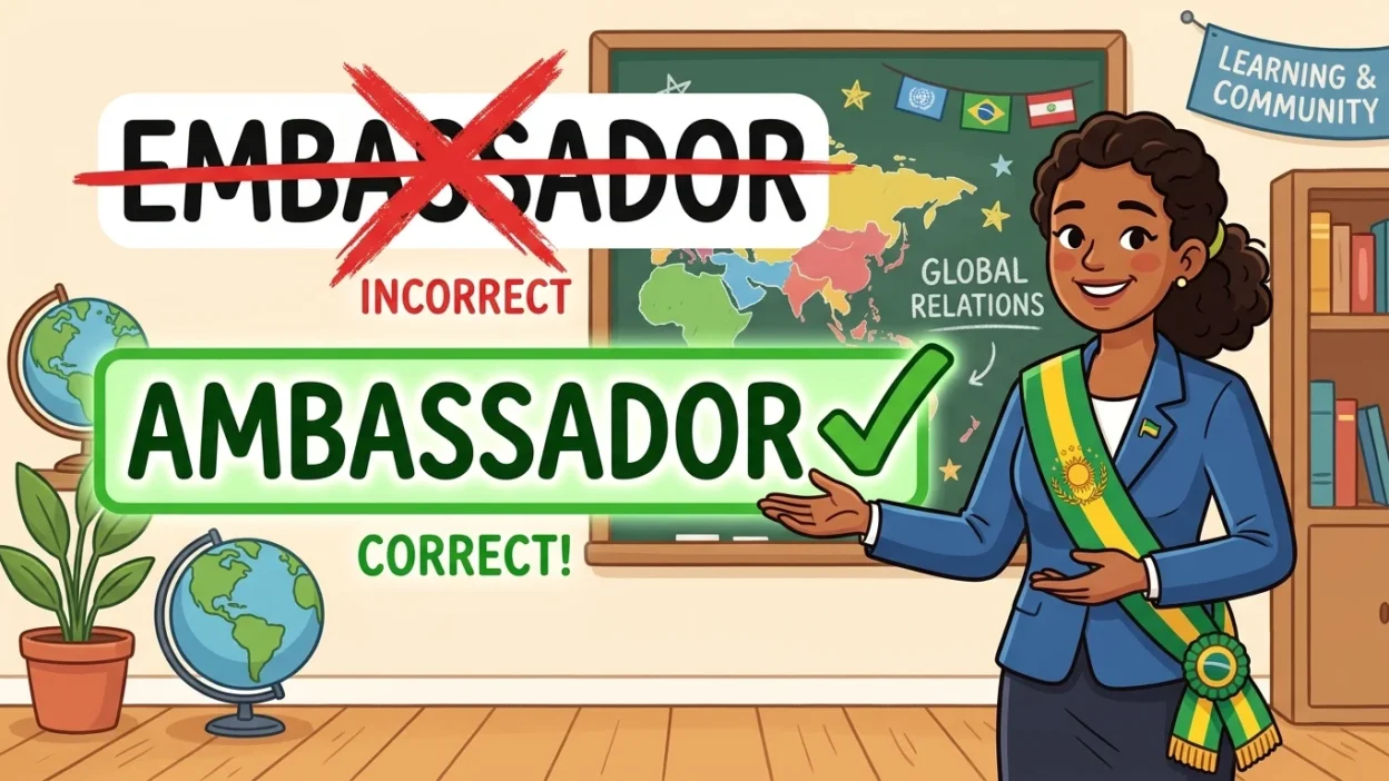 Many learners feel confused between “embassador” and “ambassador.” The words look very close, and when spoken quickly, they can sound similar.